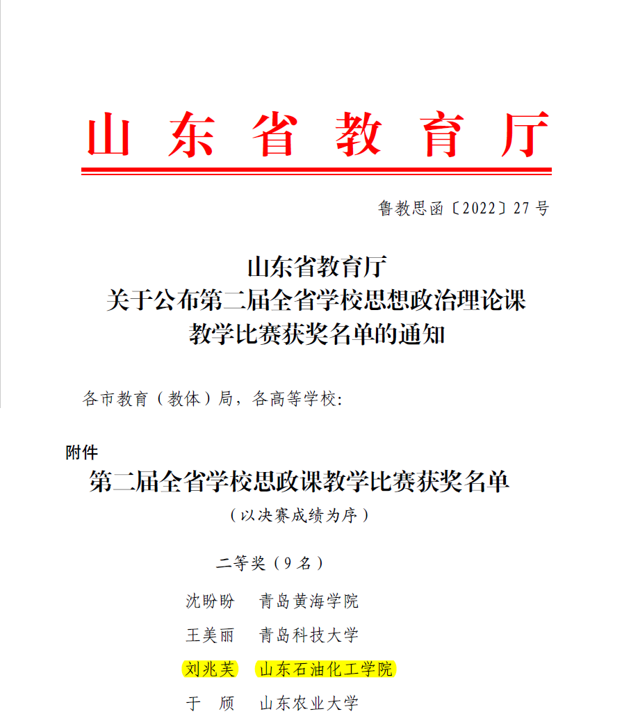 9月2日,第二届全省学校思想政治理论课教学比赛获奖名单公布,我院教师刘兆芙获二等奖。