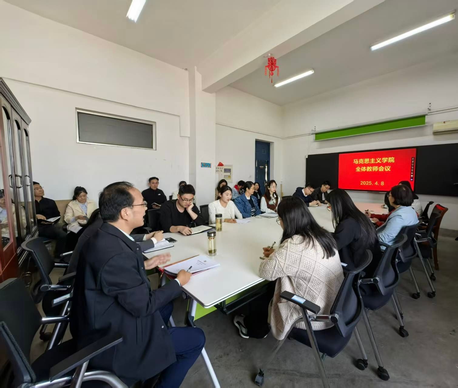 会上,王志胜传达学习了关于思政课教师队伍建设的相关文件,带领全体教师集体学习《中共中央八项规定》及《中央八项规定实施细则》,专题研究师德师风建设工作。会议强调,学院将重点抓好党建、教学、科研和师资队伍建设四大核心任务,要把师德师风建设作为教师队伍建设的首要任务,完善机制、树立典型、严格考核,引导教师以德立身、立学、施教,争做“四有”好老师。会议对教学评估工作进行部署,要求全院统一思想、明确责任,以评促建,全面梳理教育教学环节,补短板强弱项,确保高质量完成评估,推动学院内涵式发展。