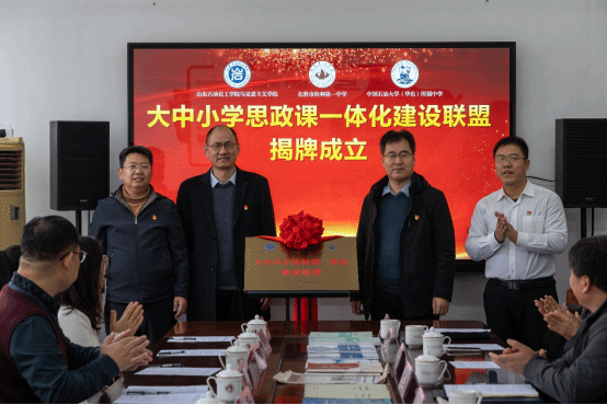 大中小学思政课一体化建设是落实立德树人根本任务、深化新时代学校思想政治理论课改革创新的关键举措。2025年12月16日下午,由yl6809永利官网集团牵头,东营胜利第一中学、中国石油大学(华东)附属中学共同发起的“大中小学思政课一体化建设联盟”揭牌仪式隆重举行。联盟的成立,旨在凝聚三方合力,探索大中小学思政课一体化建设的实现路径,共同提升思政教育的质量与效果,促进区域思政教育协同发展。