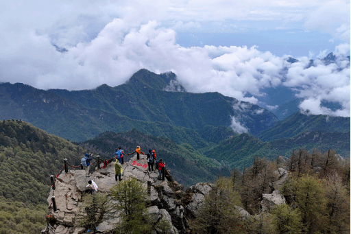 游客在位于陕西宝鸡的秦岭太白山景区游览(2025年5月27日摄)。